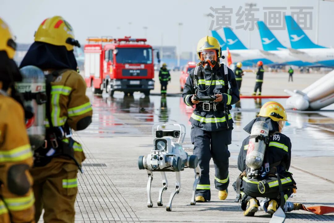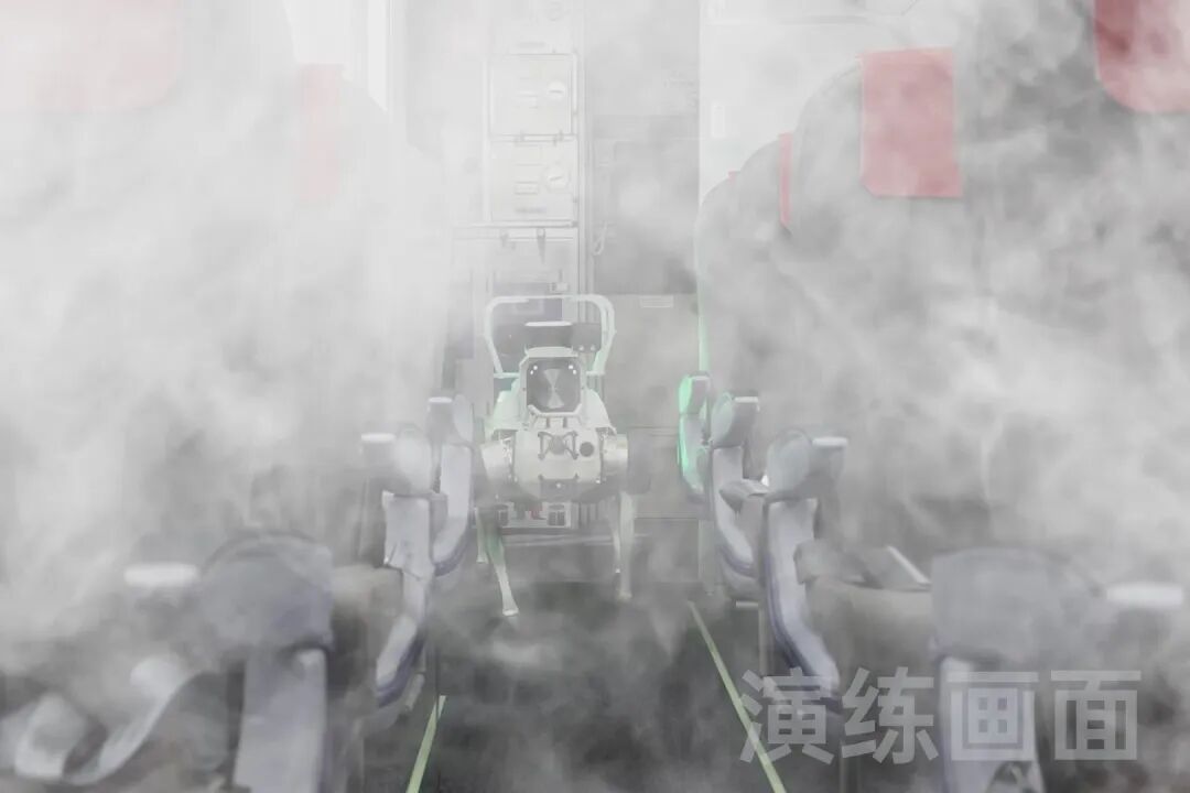 搜救被困人员时,四足应急救援机器狗化身“钢铁兵士”,搭载生命探测仪与多气体传感器,完结浓烟机舱内被困人员精准定位,助力消防人员快速挽救乘客。