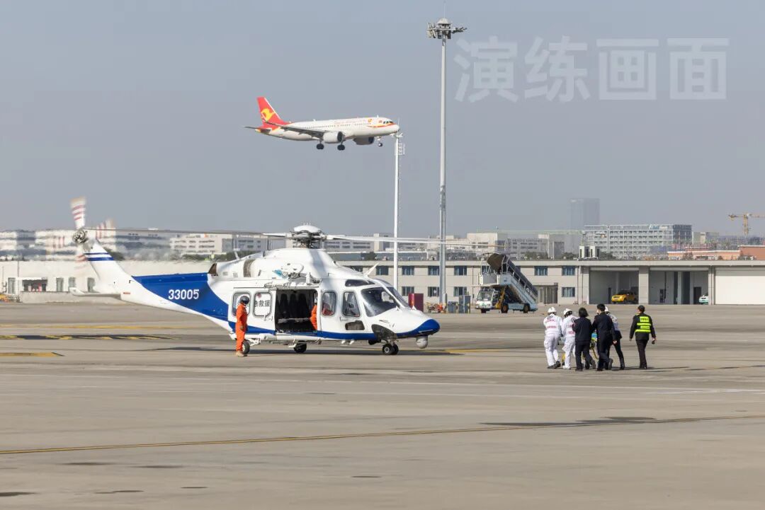 在伤员转运环节,型号为AW139救援直升机紧迫起飞,将重伤员跨区域快速转运至异地医院,完成了空中生命支撑的无缝联接。